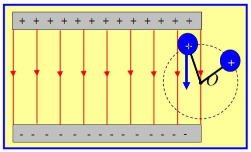 Ένα φορτίο +q εισέρχεται στο ηλεκτρικό πεδίο του πυκνωτή, όπως στο σχήμα.