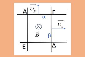 Οι μεγάλου μήκους αγωγοί α και β κινούνται με σταθερές ταχύτητες όπως δείχνει το σχήμα σε ομογενές μαγνητικό πεδίο. Ας ...