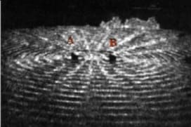 Προσοχή όμως, η απομάκρυνση ενός σημείου της επιφάνειας μετά τη συμβολή των κυμάτων σε αυτό, υπολογίζεται με χρήση της αρχής επαλληλίας, ως y=y1+y2 όπου οι y1=f(r1,t) και y2=f(r2,t) γράφονται ως εφαρμογή της (2.4) που είναι σαφώς στην ύλη