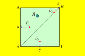 Στο σχήμα βλέπετε την τομή ενός ομογενούς μαγνητικού πεδίου, στο επίπεδο της σελίδας, σχήματος τετραγώνου πλευράς α=0,4m, με ένταση Β=10-4Τ κάθετη στο επίπε […]-