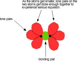 In the case of fluorine, this repulsion is great enough to counteract much of the attraction between the bonding pair and the two nuclei; this weakens the bond.