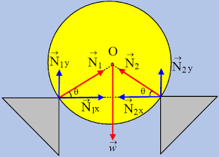 Οι δυνάμεις από τις γωνίες Ν1 και Ν2 κατευθύνονται προς το κέντρο Ο της σφαίρας (αφού δεν υπάρχουν τριβές).