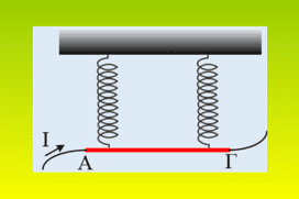 Ο ευθύγραμμος αγωγός AΓ του σχήματος έχει μάζα m=0,2kg, μήκος l=1m και κρέμεται κατακόρυφα από δύο όμοια ελατήρια σταθεράς k=20Ν/m, παραμένοντας σε οριζόντ […] -