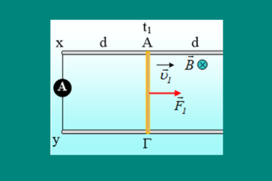 Δύο οριζόντιοι ομογενείς ευθύγραμμοι αγωγοί xx΄και yy΄παρουσιάζουν την ίδια αντίσταση R, ενώ στα άκρα τους xy, συνδέεται ένα ιδανικό αμπερ […]-