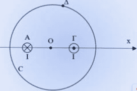 Στο επίπεδο της σελίδας δίνεται ένας κύκλος κέντρου Ο. Στο χώρο έχουμε τρεις ευθύγραμμους αγωγούς (1), (2) και (3), μεγάλου μήκους, οι οποί […]-