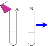 Σε δύο δοκιμαστικούς σωλήνες Α και Β βάζουμε από 2m; διαλύματος οξαλικού οξέος 1Μ. Στον Α σωλήνα προσθέτουμε 0,5m; οξινισμένου διαλύματος ΚΜnΟ4 0,1Μ.