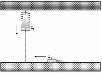 Σημειακό σώμα Σ1 μάζας m=1kg ισορροπεί δεμένο στο ελεύθερο άκρο ιδανικού ελατήριου σταθεράς K=100N/m το άλλο άκρο του οποίο είναι ακλόνητα στερεωμένο σε οροφή. Το σώμα Σ1 απέχει από το έδαφος d=0,2m.
