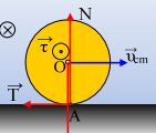 Ένας τροχός μάζας Μ=20kg και ακτίνας R=0,5m κυλίεται χωρίς να ολισθαίνει σε οριζόντιο δρόμο με ταχύτητα κέντρου μάζας υcm=20m/s. Ασκώντας πάνω του μια σταθερή ροπή, μέσω ενός ζεύγους δυνάμεων, ο τροχός ακινητοποιείται μετά από λίγο.