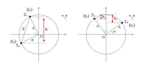 Το διάστημα S που διανύει το ταλαντούμενο σώμα είναι προφανώς ίσο με την προβολή του τόξου Σ1Σ2 (ή του ευθυγράμμου τμήματος Σ1Σ2) πάνω στον y άξονα.