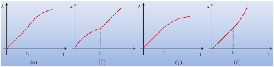 Ένα αυτοκίνητο κινείται ευθύγραμμα με σταθερή ταχύτητα και σε μια στιγμή t1 αρχίζει να φρενάρει μειώνοντας την ταχύτητά του. Ποιο από τα παρακάτω διαγράμματα περιγράφει σωστά τη θέση του σε συνάρτηση με το χρόνο;
