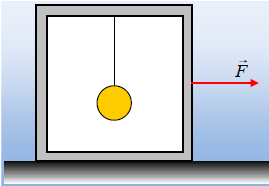 Ένα κιβώτιο μάζας Μ ηρεμεί σε οριζόντιο επίπεδο με το οποίο εμφανίζει συντελεστή τριβής ολίσθησης μ. Στο εσωτερικό του κρέμεται μια σφαίρα μάζας m με νήμα, όπως στο σχήμα. Σε μια στιγμή t0 στο κιβώτιο ασκείται οριζόντια δύναμη F, με αποτέλεσμα το σύστημα να κινηθεί προς τα δεξιά. Για τη στιγμή t0, αμέσως μόλις ασκηθεί η δύναμη F: