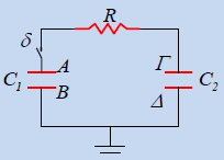 Δύο πυκνωτές συνδέονται μέσω αντιστάτη.
