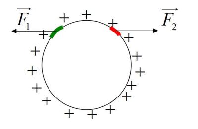 Γιάννη, στο παράδειγμα του στατικού ηλεκτρισμού που αναφέρεις είναι φυσικά αποδεκτό να χωρίσουμε τη σφαίρα σε τμήματα και να μιλήσουμε αποκλειστικά για την μεταξύ τους αλληλεπίδραση. Η κόκκινη και πράσινη περιοχή φορτίων που σχεδίασες μπορεί να υπάρχει και χωρίς τα υπόλοιπα φορτία.