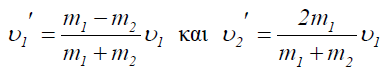 Για τις ταχύτητες των δύο υλικών σημείων που συγκρούονται ελαστικά και που το δεύτερο σώμα είναι αρχικά ακίνητο.