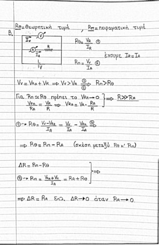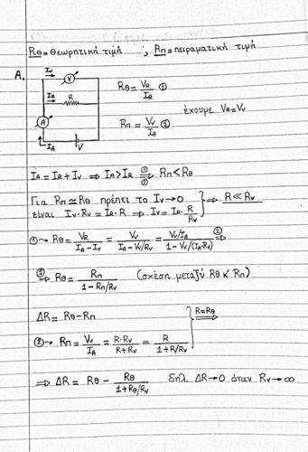 iii) Αν το αμπερόμετρο είχε εσωτερική αντίσταση r΄Α=1Ω, ποιο από τα παραπάνω κυκλώματα θα μας έδινε καλύτερο αποτέλεσμα (για το βολτόμετρο Rv=100Ω) ;