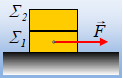 Μικρό σώμα (Σ1) μάζας m = 2 kg βρίσκεται αρχικά ακίνητο σε οριζόντιο επίπεδο με το οποίο εμφανίζει συντελεστή τριβής ολίσθησης μ = 0,5. Τη χρονική στιγμή tο = 0 s, στο σώμα αρχίζει να ασκείται σταθερή οριζόντια δύναμη F μέτρου 30 N μέχρι τη χρονική στιγμή t = 3 s, οπότε παύει να ασκείται η δύναμη F .