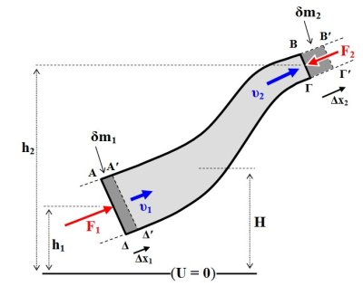 Ιδανικό υγρό ρέει μέσα σε σωλήνα. Η ροή είναι στρωτή και μόνιμη. Η ταχύτητα ροής σε κάθε θέση παραμένει δηλαδή σταθερή (αμετάβλητο πεδίο ροής).