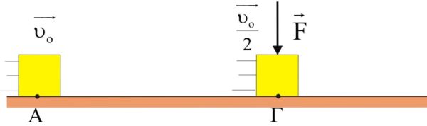 Σώμα μάζας m = 2 kg εκτοξεύεται τη χρονική στιγμή t = 0 από σημείο Α οριζοντίου επιπέδου με ταχύτητα υο = 20 m/s. Διαπιστώνεται ότι όταν το σώμα φτάσει σε σημείο Γ τη χρονική στιγμή t1 έχοντας μετατοπιστεί κατά 30 m, η ταχύτητά του έχει υποδιπλασιαστεί σε σχέση με την αρχική της τιμή. Τότε αρχίζει να ασκείται στο σώμα κατακόρυφη προς τα κάτω δύναμη F = 15x (όπου x η μετατόπιση του σώματος σε m από το σημείο Γ και μετά), όπως φαίνεται στο σχήμα. Να βρείτε: