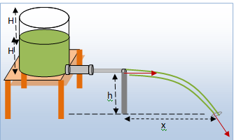 Δοχείο με ανοιχτό το πάνω μέρος του, έχει λάδι ύψους Η ,και έχει στο κάτω μέρος του οπή διαμέτρου Δ, όπου είναι προσαρμοσμένος σωλήνα ίδιας διαμέτρου Δ, και ο οποίος συνδέεται με λεπτότερο σωλήνα διαμέτρου δ. Το λάδι, μετά την εκροή του από το λεπτό σωλήνα, φτάνει σε οριζόντια απόσταση x.  Η ατμοσφαιρική πίεση είναι Ρο, και η επιτάχυνση της βαρύτητας είναι g.