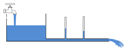 Πιθανότατα ο μαθητής θα συνδυάσει τη λογική ότι αν υπάρχει μια διαφορά πίεσης υπάρχει και μια μόνιμη ροή με σταθερή ταχύτητα ροής. Ή το πολύ να μπορεί να εφαρμόζει τη λογική, ότι στο σωλήνα του σχήματος: