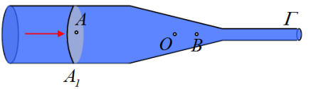 Όπου το νερό επιταχύνεται στο στένωμα, αλλά αυτό δεν σημαίνει αλλαγής της ταχύτητας στο σημείο Ο, απλά στο Β έχει μεγαλύτερη ταχύτητα από την αντίστοιχη ταχύτητα στο Ο.