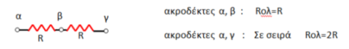 Τι εννοούμε; Εννοούμε ότι αν συνδέσουμε στα α, γ τους πόλους μιας πηγής, τότε οι αντιστάτες θα συνδεθούν σε σειρά παρουσιάζοντας ολική αντίσταση Rολ=2R.