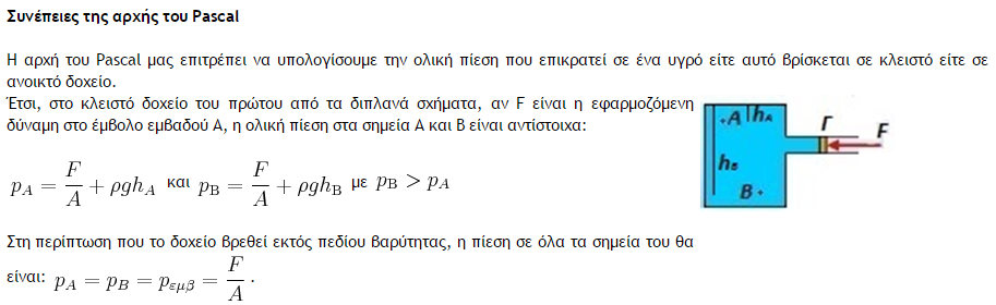 Συνέπειες της αρχής του Pascal