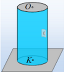 Διαθέτουμε ένα κυλινδρικό δοχείο με ακτίνα βάσης R=0,1m και ύψος Η=0,4m, σε οριζόντιο επίπεδο. Στο μέσον της απόστασης των δύο βάσεων υπάρχει μιαμικρή οριζόντια τρύπα ακτίνας r=0,2cm, μέσω της οποίας γεμίζουμε πλήρως, μέχρι υπερχείλισης, το δοχείο με νερό. Στη συνέχεια καλύπτουμε την τρύπα με μια μεμβράνη κουζίνας.