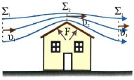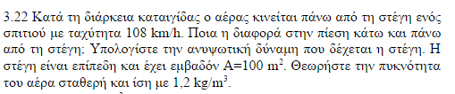 Ο αέρας στο εσωτερικό του σπιτιού είναι ακίνητος. Από την εξίσωση του Bernoulli για δυο σημεία, το ένα ακριβώς πάνω και το άλλο ακριβώς κάτω από τη στέγη έχουμε