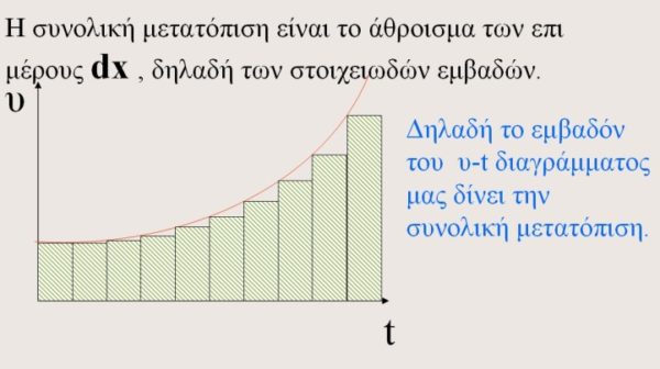 Στους περισσότερους δεν θα γίνει ποτέ η σύνδεση αυτή, ούτε πρόκειται να ξεπεράσουν το δικό σου «χάσμα», ότι μπορεί αν Δt → 0 το εμβαδόν να γίνει ακριβώς ίσο με τη μετατόπιση!