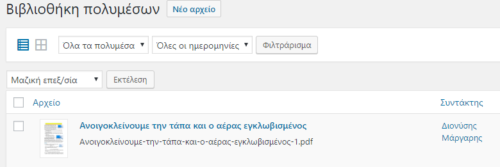 - Πατάμε στο πάνω μέρος της σελίδας το εικονίδιο +προσθήκη και την επιλογή πολυμέσων