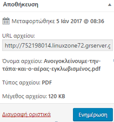 Με διπλό κλικ στο URL αρχείου, επιλέγουμε (Ctrl+c) τη διεύθυνση του αρχείου που μόλις ανεβάσαμε.