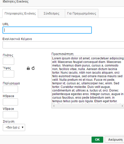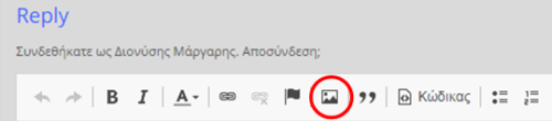 Αλλά με την ίδια λογική βάζουμε και εικόνα, αφού την ανεβάσουμε όπως και το αρχείο και αντιγράψουμε τη διεύθυνση URL. Τώρα κάνουμε κλικ στο εικονίδιο εικόνας: