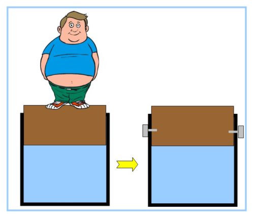 -Όχι θα ανέβει 10cm-10-7cm διότι το νερό συμπιέστηκε;