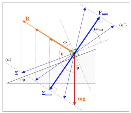 Fmin = mg·ημ[τοξεφ(μ)+θ]