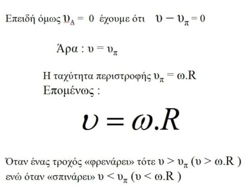 Αν δεν ισχύει η παραπάνω σχέση, τότε έχουμε ολίσθηση (ή και σπινάρισμα που πάλι ολίσθηση είναι)