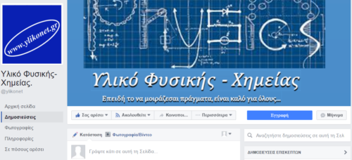 Για την εύκολη ενημέρωση των φίλων, οι οποίοι συχνάζουν στο facebook, δημιουργήθηκε η σελίδα του Υλικού Φυσικής Χημείας στo fb.