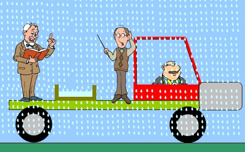 Ο άλλος υποστηρίζει πως όσο ταχύτερα κινείται το όχημα, τόσο συντομότερα θα γεμίσει η λεκάνη με νερό.