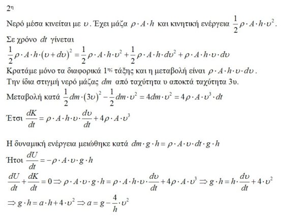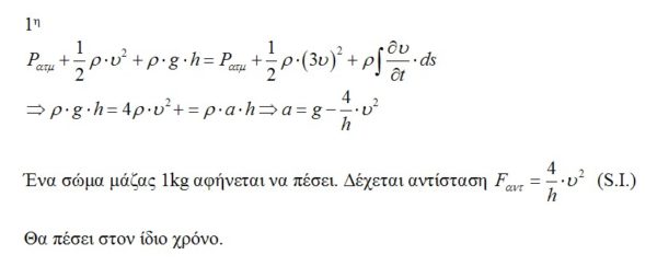 Είναι εντυπωσιακό το ότι μπορούμε να χρησιμοποιούμε τον νόμο Bernoulli άνετα και σε ροές μη μόνιμες με ικανοποιητική προσέγγιση. Δεν το περίμενα.
