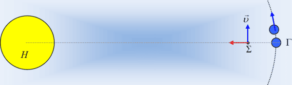 Ένας εξωγήινος παρατηρητής βλέπει μια μεγάλη έλξη (του ήλιου) να δρα ως κεντρομόλος και μια μικρότερη (της Γης) να διαταράσσει την (σχεδόν) κυκλική τροχιά.