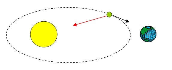 Πρέπει όσο πλησιάζει προς την γη να απομακρύνεται από τον ήλιο, δηλαδή να μειώνεται η δυναμική του ενέργεια ώστε να αυξάνεται η κινητική του.