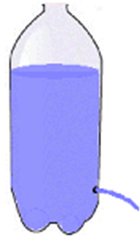 5.Το νερό στο πλαστικό μπουκάλι, όταν δεν έχει καπάκι, διαρρέει από την τρύπα που άνοιξες στο πλάι.