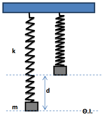 Σώμα μάζας m ισορροπεί δεμένο στο κάτω άκρο ιδανικού ελατηρίου σταθεράς k , το άλλο άκρο του οποίου είναι δεμένο στην οροφή. Μετακινούμε το σώμα προς τα πάνω κατά d ,έτσι ώστε το έργο που δαπανάμε να είναι ίσο με την αύξηση της βαρυτικής δυναμικής ενέργειας του σώματος.