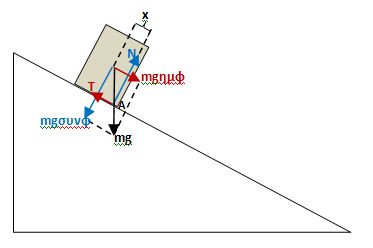 Αντίστοιχα στο κεκλιμμένο επίπεδο, όπου το ρόλο της F θα πρέπει να παίζει η mgημφ.