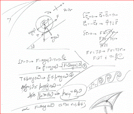 Ο κύλινδρος με το σχοινί κάτω από το κέντρο είναι ένα θέμα που προσωπικά μου αρέσει, ειδικά στους υπολογισμούς για το έργο της δύναμης (που έθιξε ο Θοδωρής στο τελικό διαγώνισμα στο σχολείο του) αλλά και για το ρυθμό παραγωγής έργου. Πολλά παιδιά ειδικά όταν ο κύλινδρος είναι στο οριζόντιο επίπεδο και το σχοινί κάτω από το κέντρο, αδυνατούν να καταλάβουν τον τρόπο με τον οποίο κινείται. Αδυνατούν να καταλάβουν ότι στην περίπτωση αυτή το σχοινί τυλίγεται. Ένα κλασσικό παιχνίδι γιο-γιο είναι το πειραματικό μου εργαλείο, πάντα μέσα στην τσάντα, για να τους πείσω για τον τρόπο κίνησης του.