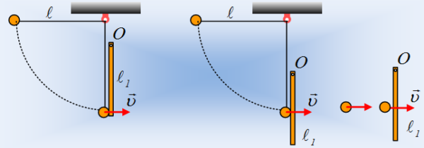 Ένα εναλλακτικό σχήμα, όπου το σώμα, δεμένο στο άκρο νήματος φέρεται σε οριζόντια θέση και αφήνεται να κινηθεί. Φτάνοντας στην κατακόρυφη θέση έχει ταχύτητα υ και συγκρούεται με ράβδο που ηρεμεί.