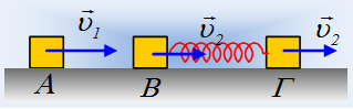 Αλλά για να μην θεωρητικολογούμε ας πάρουμε το σχήμα, όπου τα σώματα Β και Γ είναι δεμένα στα άκρα ενός ιδανικού ελατηρίου και κινούνται προς τα δεξιά με την ίδια ταχύτητα υ2.