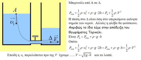Πάρε νόμο Μπερνούλι όπως χρησιμοποιείται στην απόδειξη του θεωρήματος Τορικέλι.