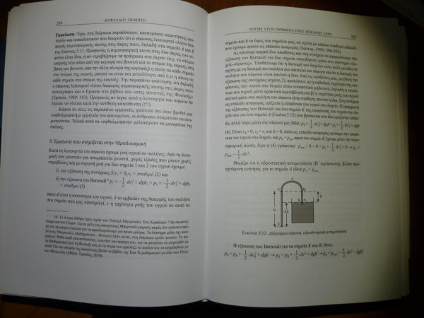 Δεν έχω διαβάσει το βιβλίο του κ. Κουμαρά, αλλά δε νομίζω ότι γράφει κάτι διαφορετικό. Από ότι κατάλαβα για το παραπάνω σχήμα χρησιμοποιεί το Μπερνούλι και βάζει και τις ταχύτητες. Αυτές όμως, στην ιδανική περίπτωση που εξετάζουμε, είναι ίδιες στα σημεία Α και Β, επομένως δεν παίζουν ρόλο. Αλλάζουν τα πράγματα αν θέλουμε (σαν τεχνικοί) να υπολογίσουμε παροχές κ.τ.λ. Τότε πρέπει να πάρουμε υπόψη ιξώδες, συμπιεστότητα κ.λ.π. Και αυτά έχουν γίνει, αλλά δεν είναι του παρόντος.