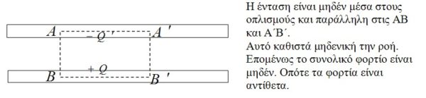 Αν δεν συνέβαινε αυτό, δεν θα είχαμε μηδενική ένταση πεδίου στο εσωτερικό του περιβλήματος. Όμως υποχρεωτικά πρέπει στον αγωγό να έχουμε μηδενική ένταση. Επομένως (αν ο αγωγός είναι αποσυνδεδεμένος) το φορτίο είναι -Q.